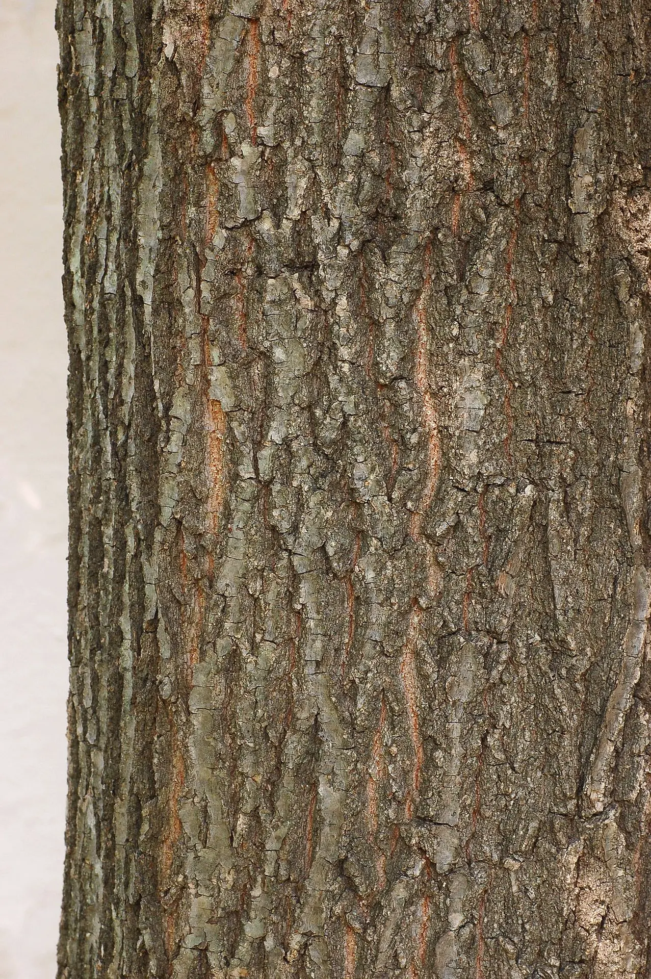 Sur un chêne âgé : écorce très crevassée, avec des fissures profondes (aspect “rugueux”, très marqué).